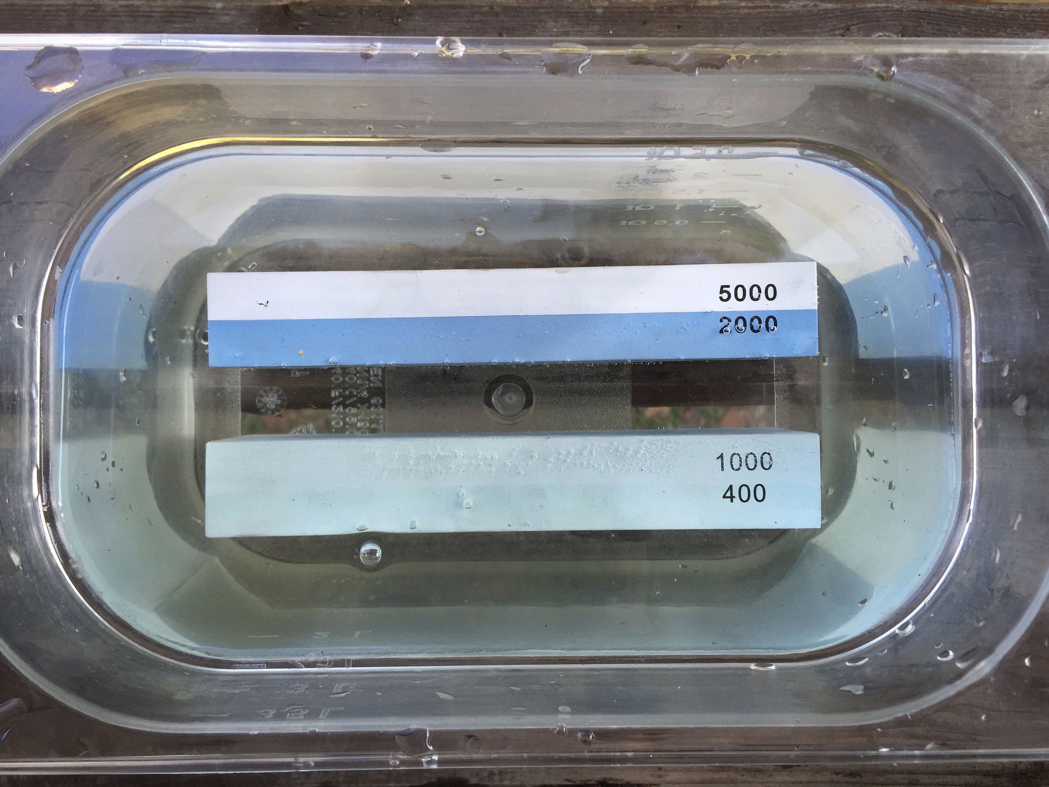 Včera mi přišly nové kameny na broušení. K základnímu kameni s hrubostí 400 a 1000 ještě jemnější kámen s 2000 a 5000 (Taidea, 1275 Kč). Jdu šmrdlat, brousit, leštit. Dokud mi ruka neupadne.