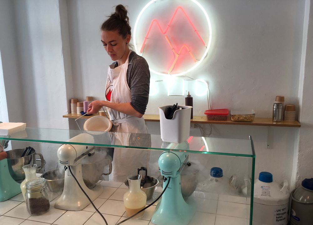 Zmrzka dělaná fresh s pomocí kapalného dusíku a Kitchenaidu. Spotřeba prý 1 l dusíku na 1 l zmrzliny.