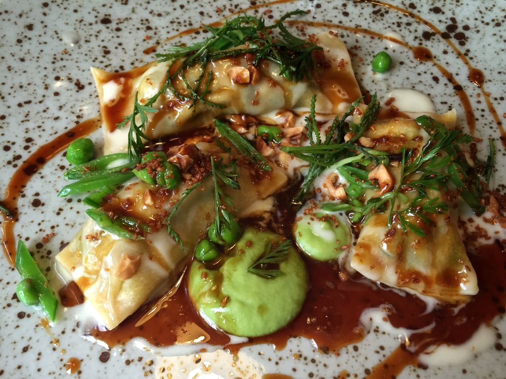 Není lepší páteční oddych. Humří cannelloni (225 Kč) s mladým hráškem, silnou šťávou a olivovou trávou (skvělá věc, které se musím brzy pověnovat). Nezdá se to, ale má to razanci skoro jako hlavní chod.