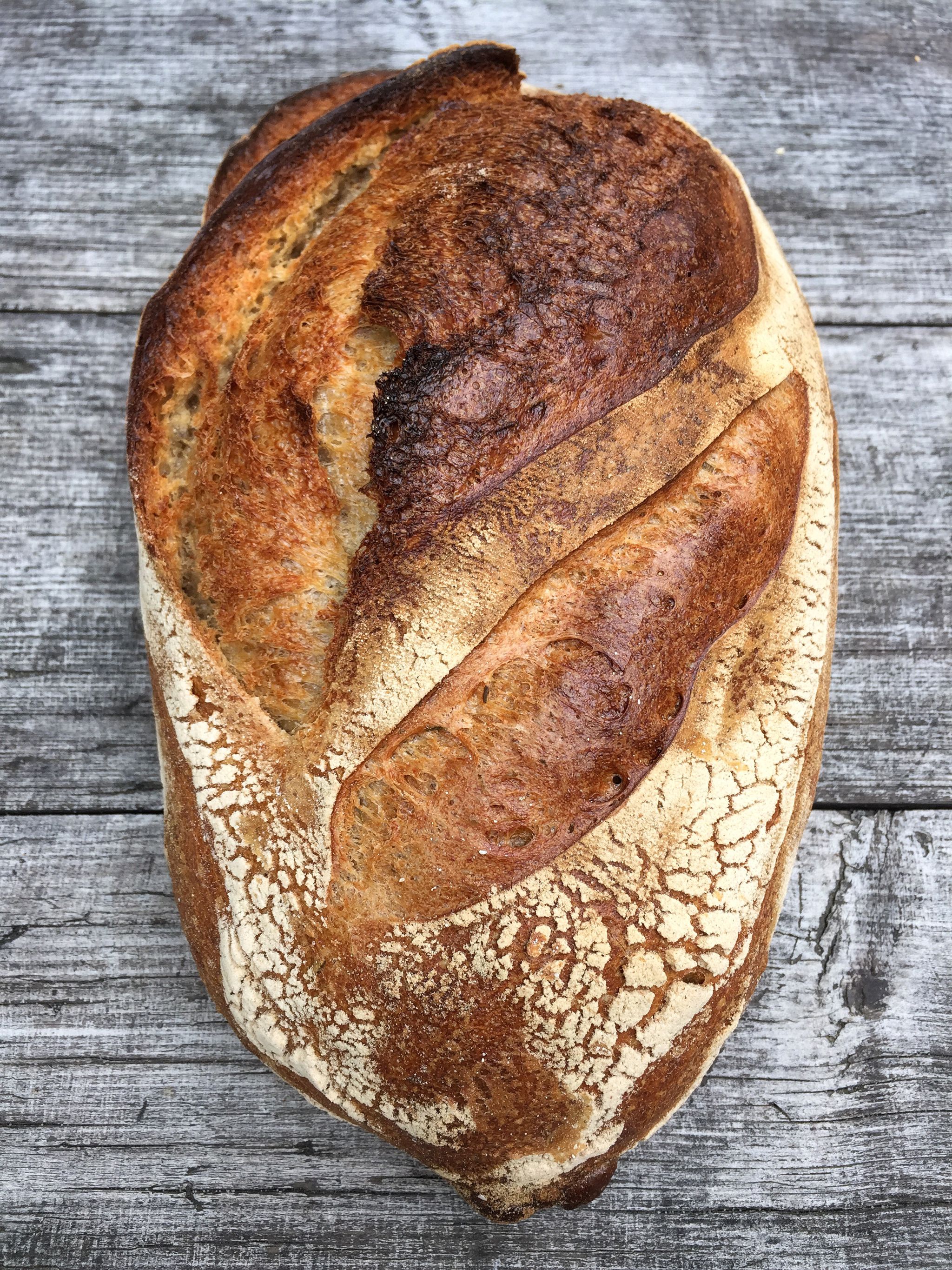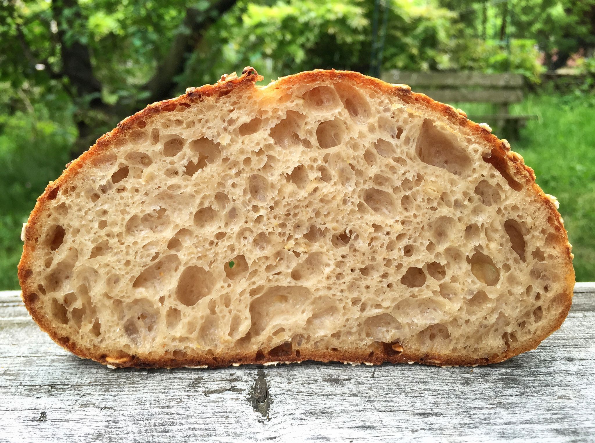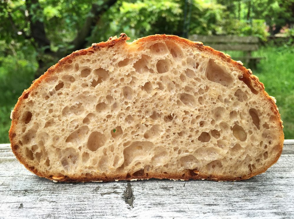 Kyprá a neuvěřitelně krémová střída. Plno velkých lesklých bublin. Vůně obilí a nažloutlá barva. Krásná křupavá kůrka.
