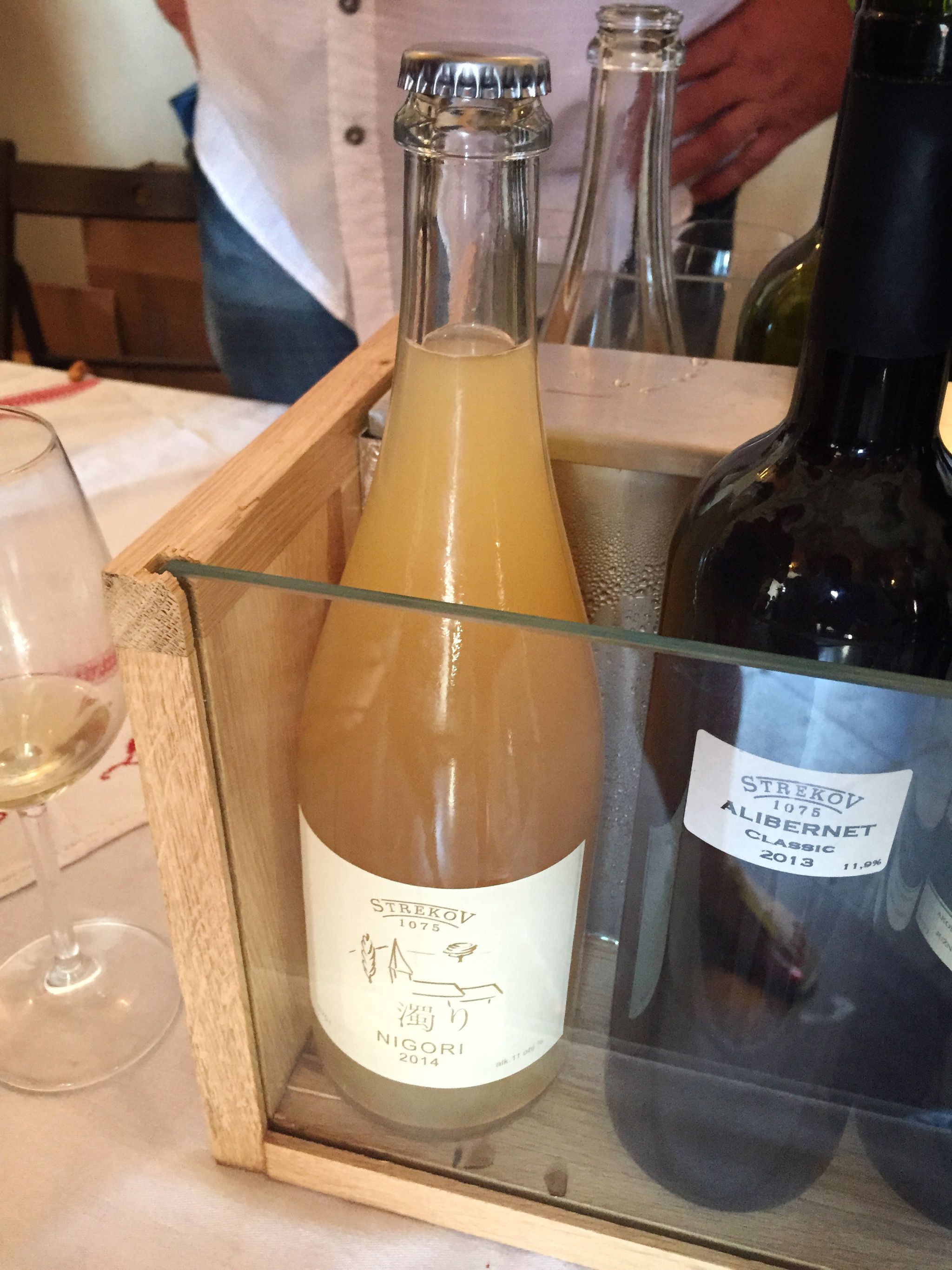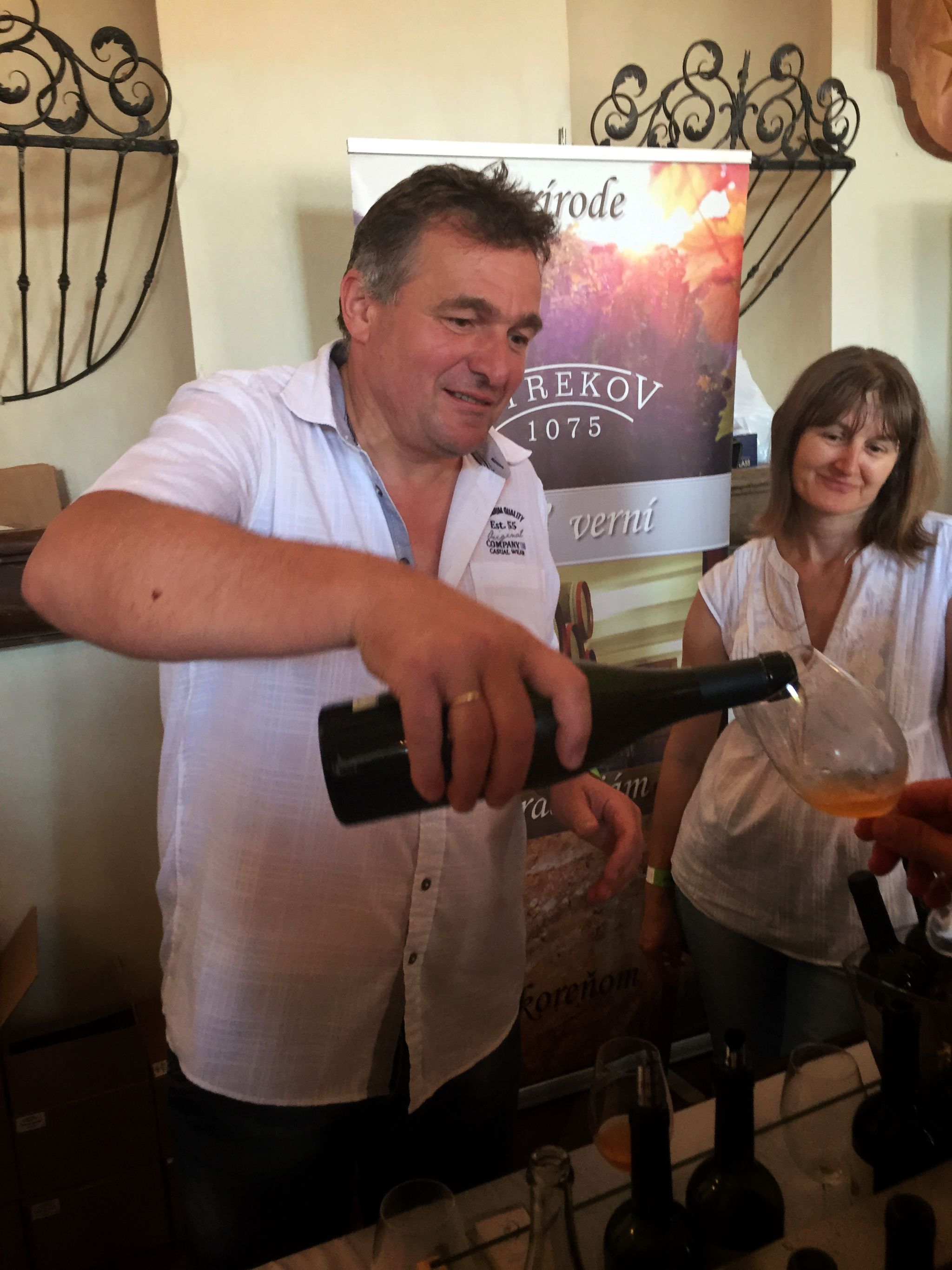 Na fotkách Zsolt Sütő z vinařství Strekov 1075. Na stánku měli vína, ke kterým se člověk normálně nedostane (jsou beznadějně vyprodaná). Úplně mě dostala jejich Porta (zrálo pod florem) a Nigori (lahvováno s kalem, na fotce). Dekantace je prý dehonestace vína, ujišťoval mě přímo pan vinař. A podával to tak sugestivně, že jsem mu to vřele odkýval.