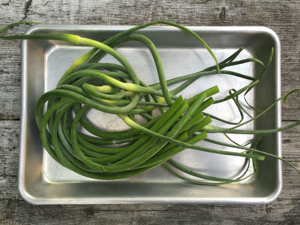 Ale je to tak. Běžně se tyhle výhonky z česneku vylamují, aby se rostlina neoslabovala tvorbou květu. Celá část výhonku je ale perfektně jedlá.