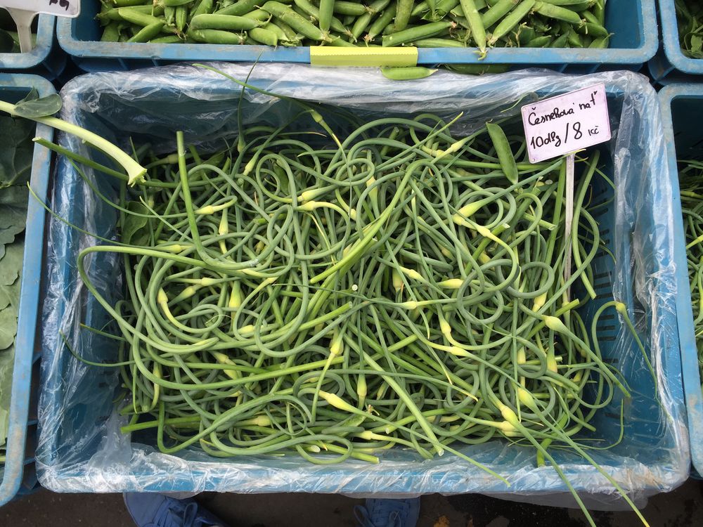Taky jsem tu dnes našel plnou přepravku česnekových výhonků. Velká radost! :)