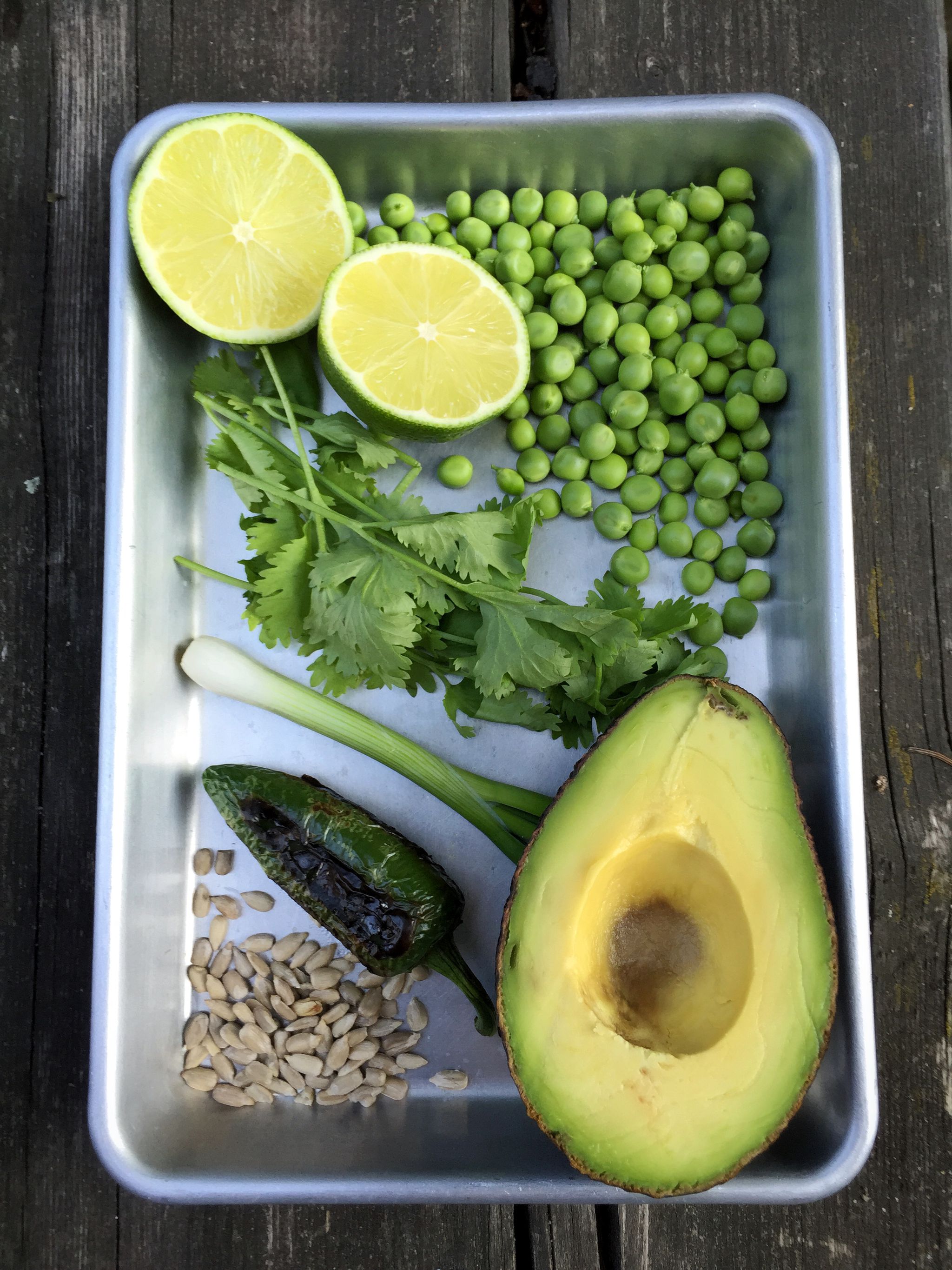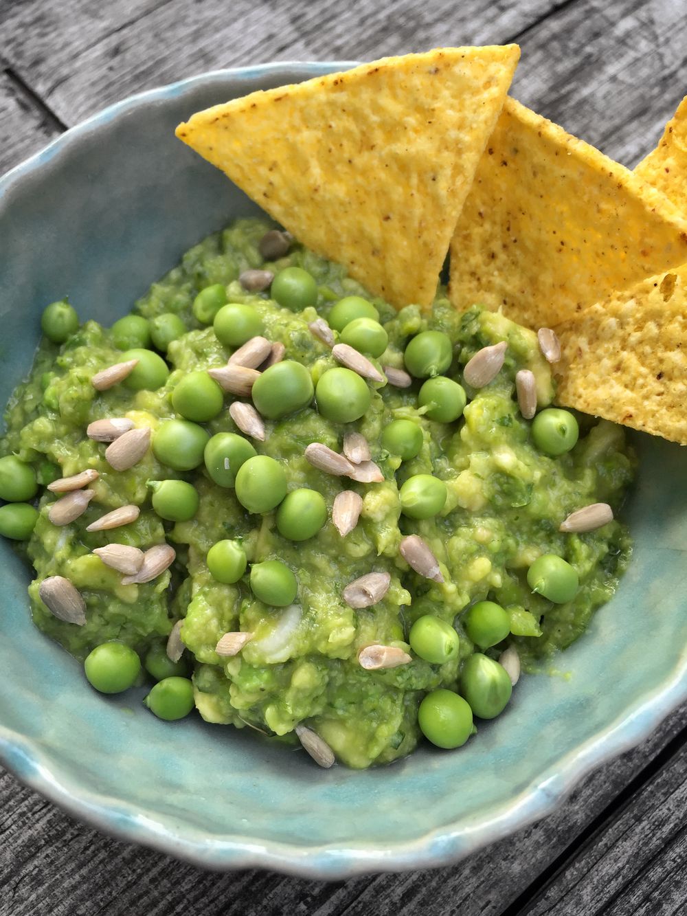 Recept na hráškové guacamole je tak na 15 minut, pokud jste rychlí. Je tam docela dost ingrediencí, ale myslím pořád ještě v mezích snesitelnosti.