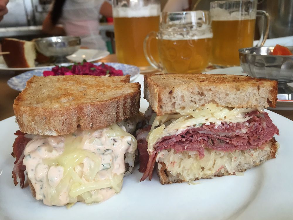Dvakrát Matuška Summer Pale Ale, blood cake a nová specialita Reuben sendvič (chléb, pastrami, zelí, sýr, dresink – hodně kompaktní, šťavnaté a vyvážené), který mě totálně utvrdil v tom, že teď v Praze zážíváme sendvičovou explozi (kryjte se, lítá to všude!).