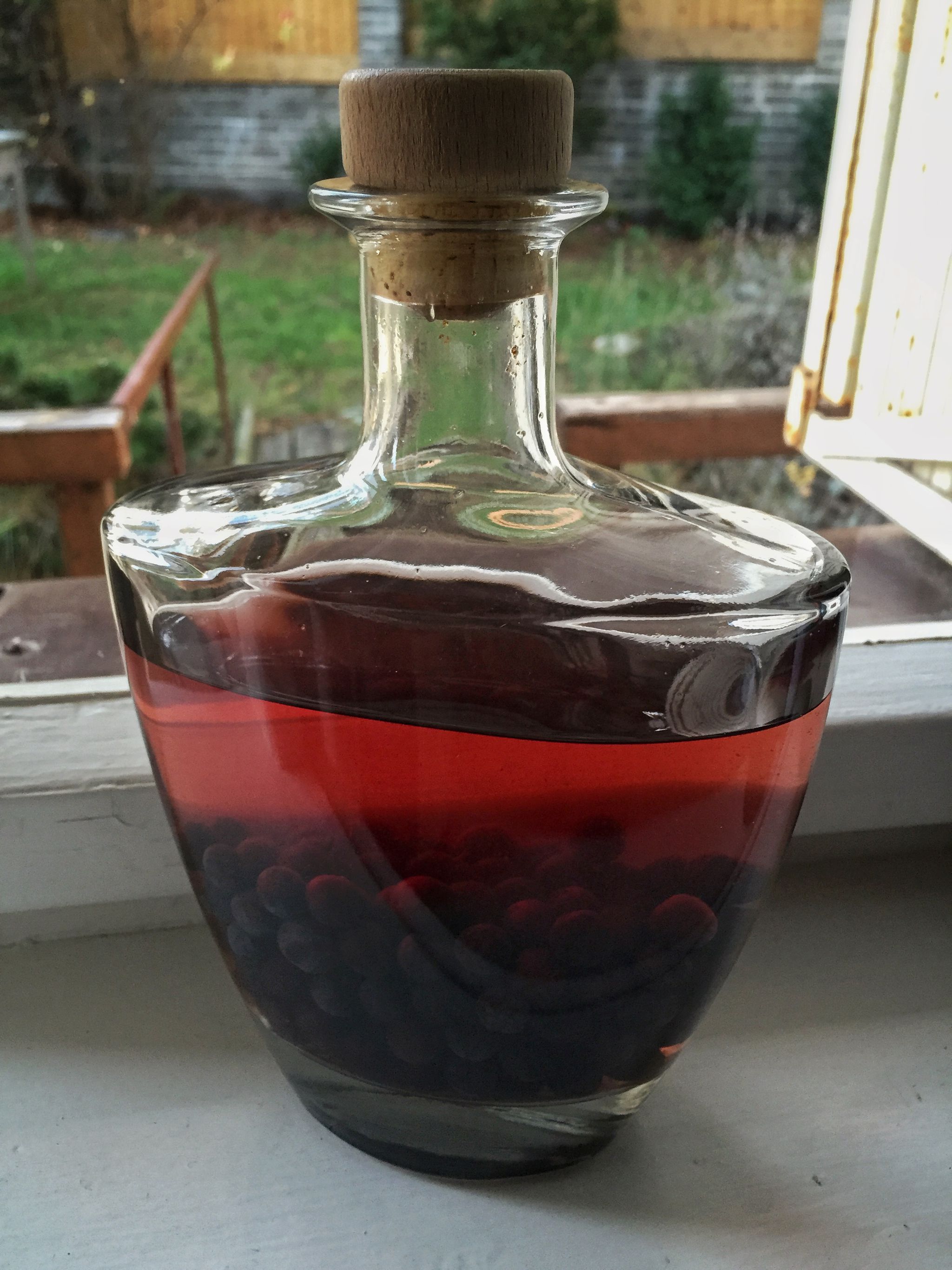 Vypadá to moc dobře! Sloe gin chytl krásnou barvu a cukr je už dokonale rozpuštěný. Nevím jestli to do února vydržím... :) Tady je celý recept.