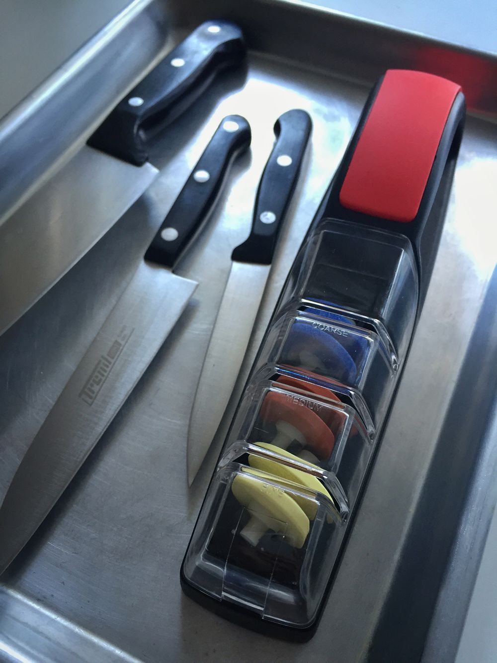 Jinak to ale vidím jako perfektní řešení pro domácího kuchaře, který se nechce drbat s brusnými kameny. Mít doma tohle a k tomu obyčejnou ocílku, tak máte myslím komplet vystaráno.