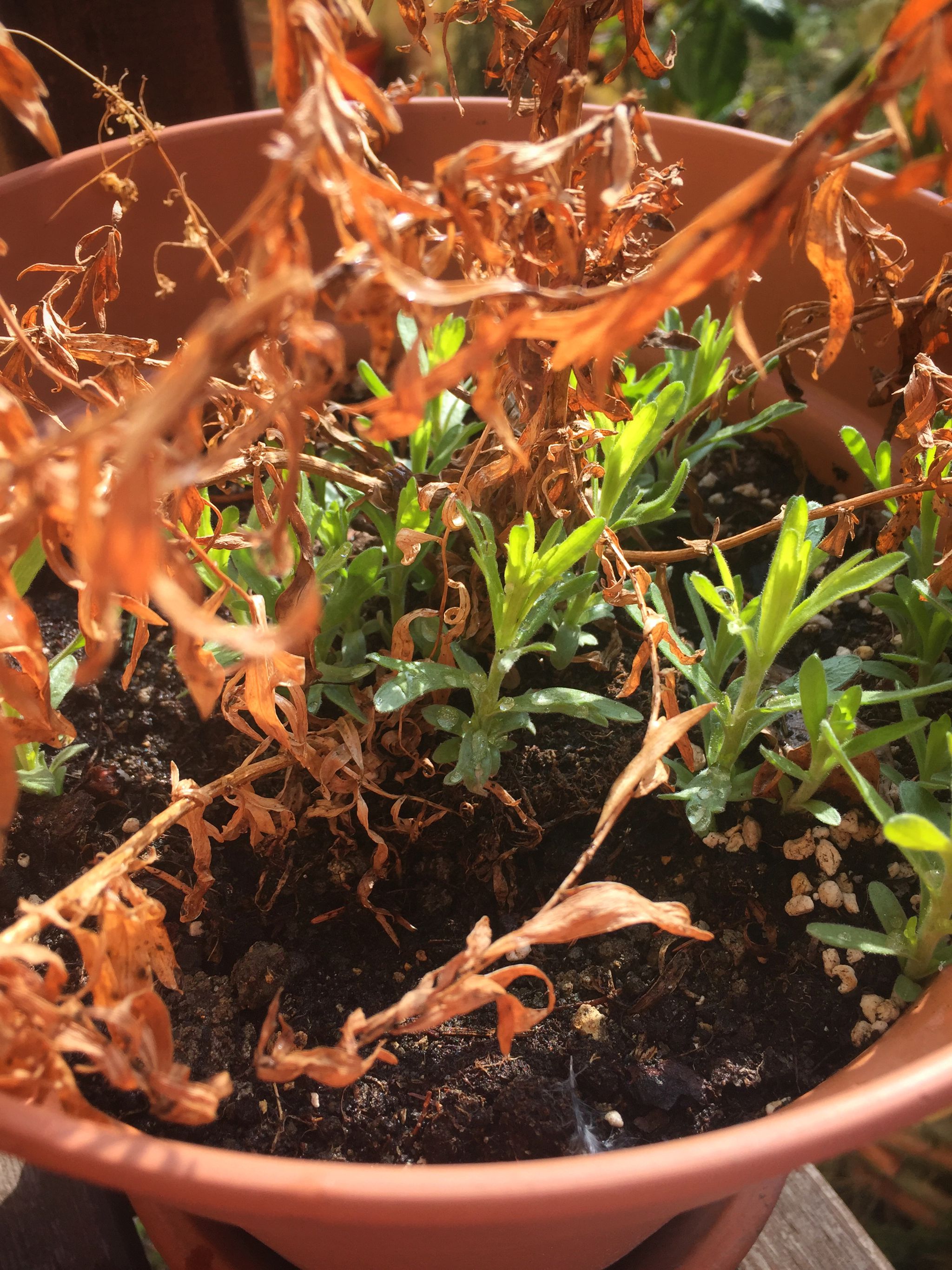 Teď jsem je šel při ůklidu balkonu zkontrolovat a vypadá to, že estragon zimu přežil a pěkně obrašil (dvě rostliny ze tří). Přitom jsem na něj úplně zapomněl, nijak jsem ho nezakrýval a ani nezaléval.