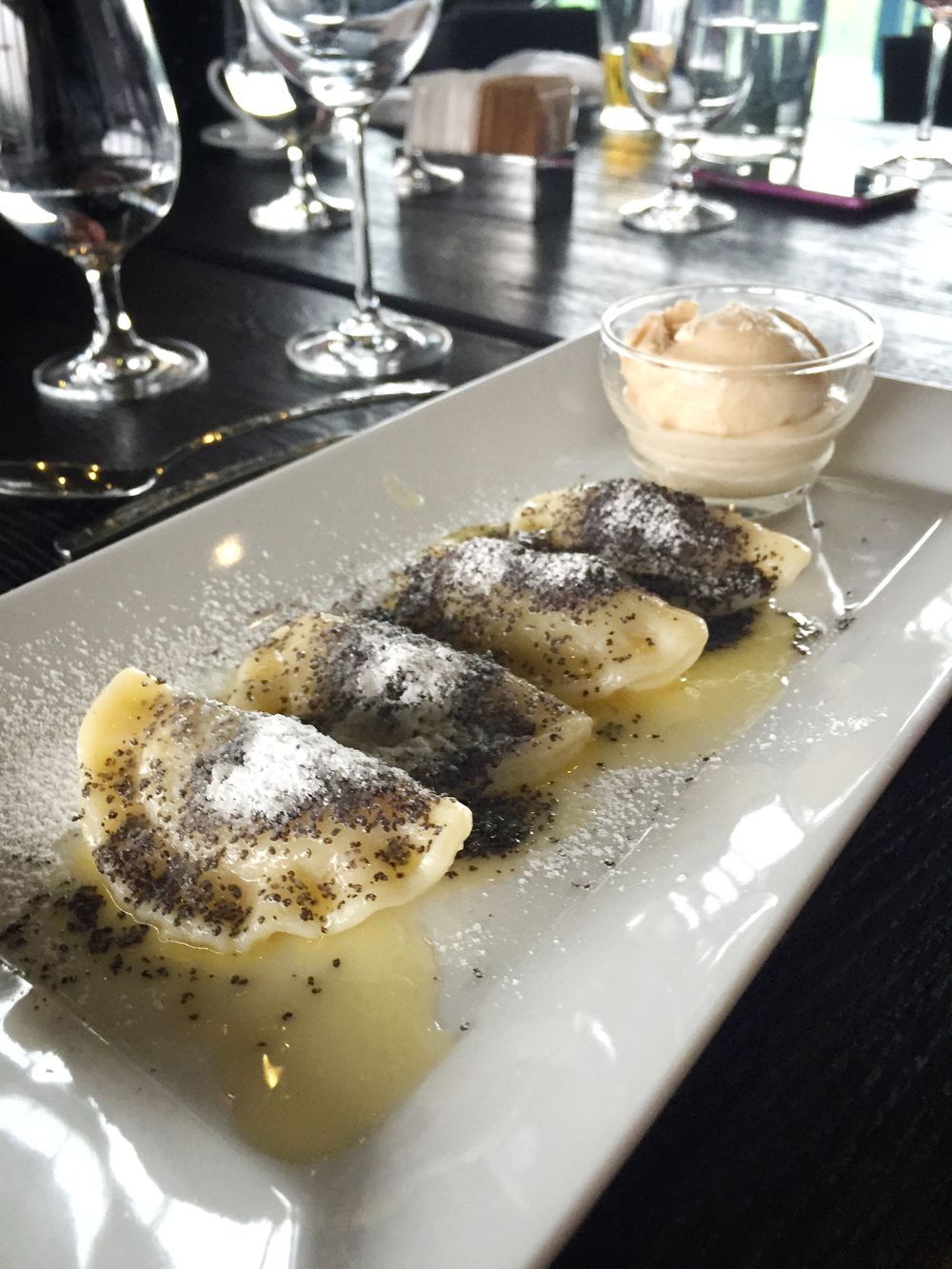 Pak stejně skvělý candát (340 Kč) a k němu mimořádně povedené kedlubnové zelí a anýzové bramborové kroketky. Taštičky s povidly a frgálovou zmrzkou (180 Kč) jako klasický finiš.