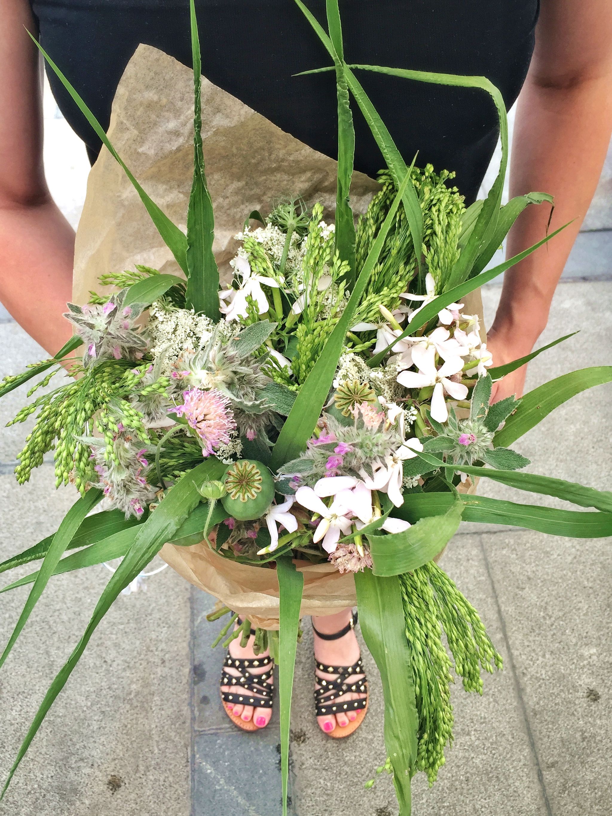 Dnes ukízková zlatá řepa ze Zeleniny Syrovín, mangold a žluté mrkve z Jambozu, chléb z Praktiky a můj nejnovější objev – kytice od Gardenisty. Naprostá nádhera!