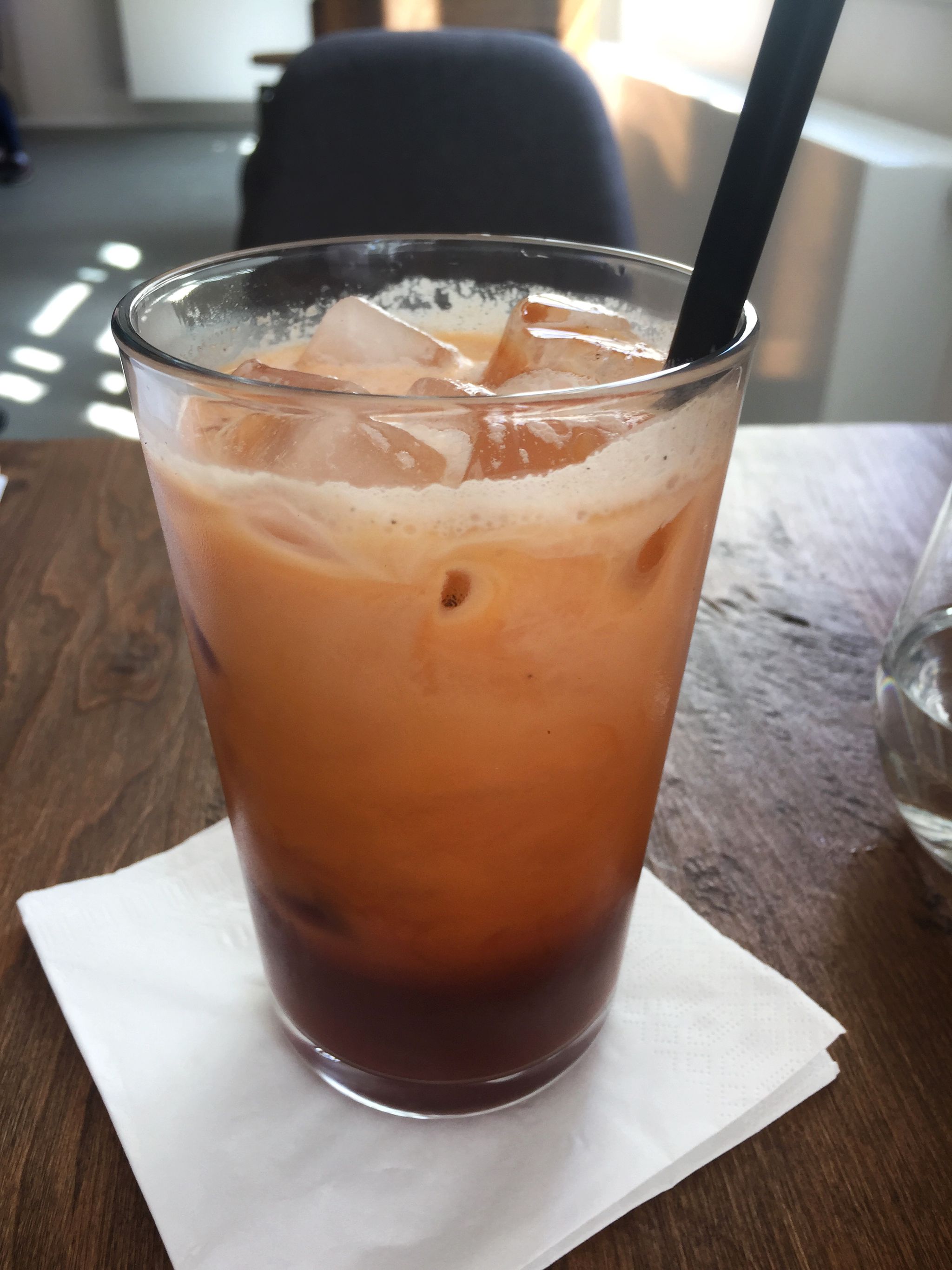 Na fotkách servis kávy (75 Kč) a thai ice tea (85 Kč).