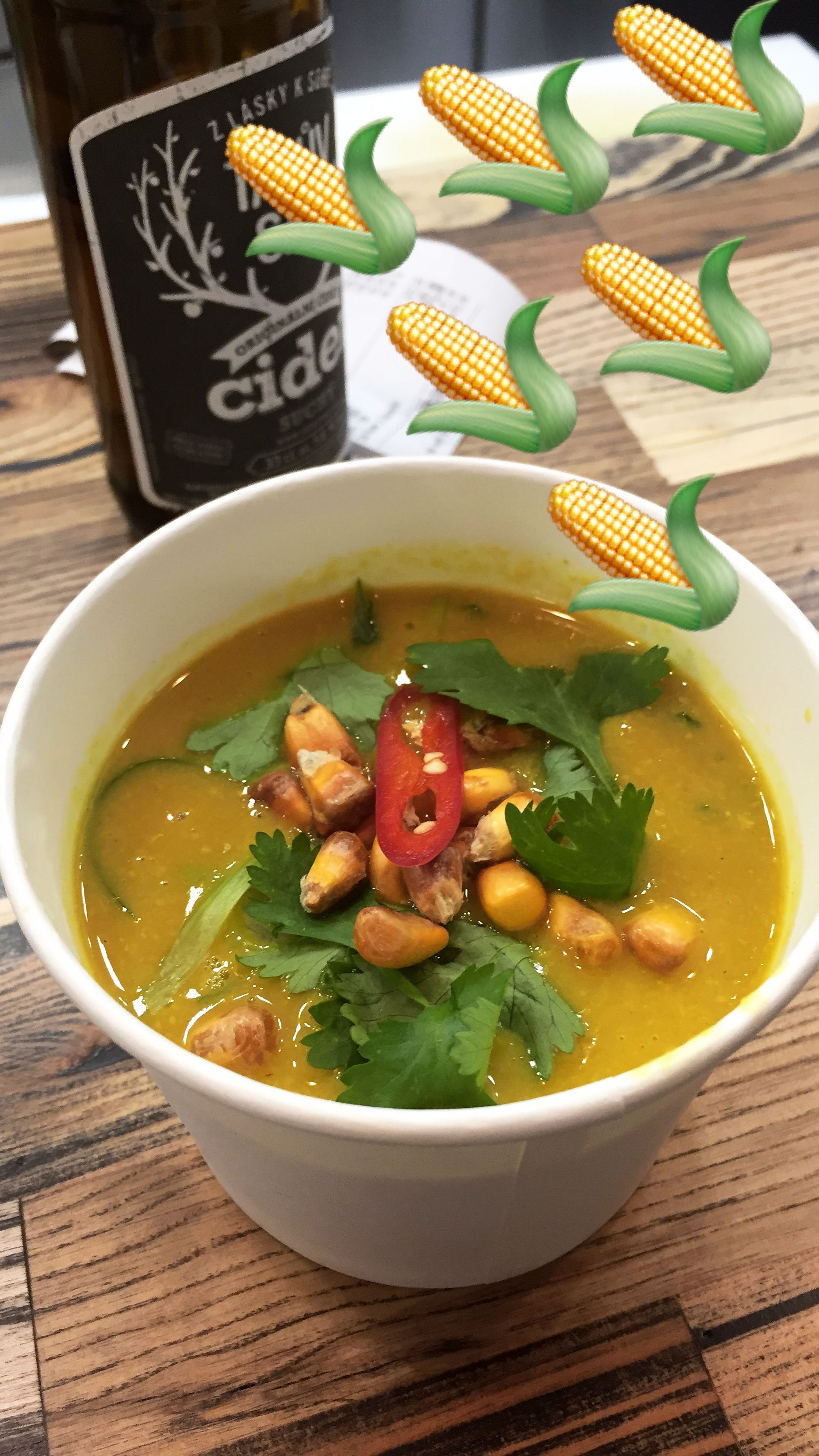 Fotky (mám jen z IG strories, pardon): Bo la lot bowl (179,- Kč) - grilované hovězí v betelovém listu s rýžovými nudlemi, krémová kukuřičná polévka (79,- Kč). Plus body: většinu jídel z menu vám na přání upraví na vegetariánskou verzi.