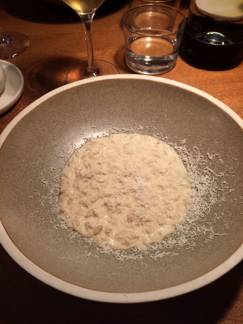 Tři roky vyzrály parmazán a kopřivové pyré, které se ukrývá pod risottem ze slunečnicových semínek. Zní to určitě divně, ale byla to pecka. Skvělá hravá kombinace!