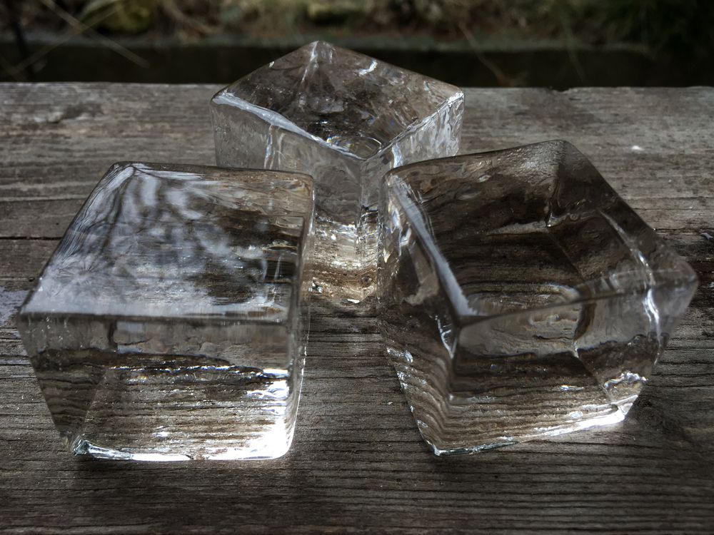 Pokud se do výroby pustíte, dělejte led z čisté a čerstvě převařené vody. Samo o sobě to na čirý led nestačí, výsledky jsou ale o fous lepší. Plus – pokud teď venku mrzne jen pár stupňů pod nulu, jsou to ideální podmínky pro výrobu čirého ledu ve velkém. Čím pomaleji voda mrzne, tím je led kvalitnější. Pokud budete led sekat, nehcte ho vždy pořádně odpočinou, jinak se bude tříštit. Při porcování pomůže nůž na chleba, kterým naznačíte mělký zářez a zbytek pak už jednoduše odseknete.