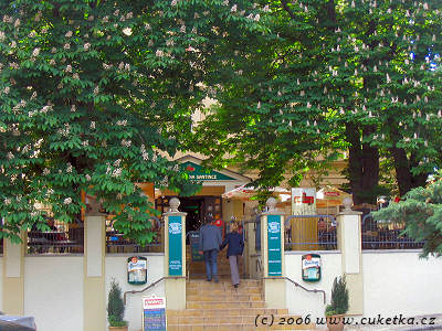 Na santince je na první pohled velice příjemný podnik s velkou venkovní zahrádkou ukrytou pod dvěmi vzrostlými kaštany. Nevím proč, ale podnik na mne působil od první chvilky velmi příjemně. Asi spolupracovali feng-shui mistři světa amoleta ;)