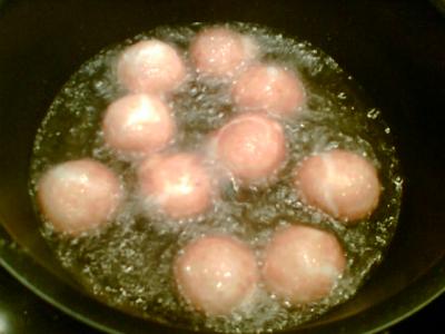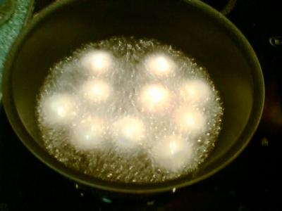 Věnoval jsem se tedy obracení kuliček v oleji, poměrně překvapily, neboť se začaly roztahovat a docela prskaly a nabyly zhruba o 15% svůj objem, tedy s tím počítejte u velikosti nádoby na smažení a zástěru na sebe.