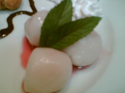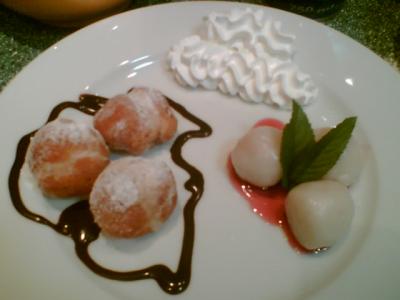 Návrh na servírování je jen testovací, jahodový sirup na vařených a máta, u smažených je čokoládový topping a v pozadí trocha šlehačky a kus konvice se zeleným čajem.