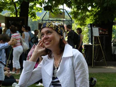 Potkáváme se s kolektivem autorek Bistra Florentýna a dopřáváme si trochu odpočinku v trávě. Opodál hraje příjemná jazzová kapela.