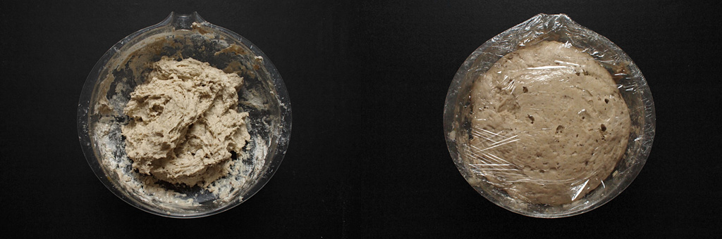Očistěte si ruce a připravte si potravinářskou fólii, do které mísu pečlivě zabalíte. Jestli fólii nemáte, stačí mísu zabalit do igelitového pytlíku (bez děr pokud možno ;). Těsto nechejte odležet přes noc 10 až 12 hodin při pokojové teplotě (15 – 22 stupňů).