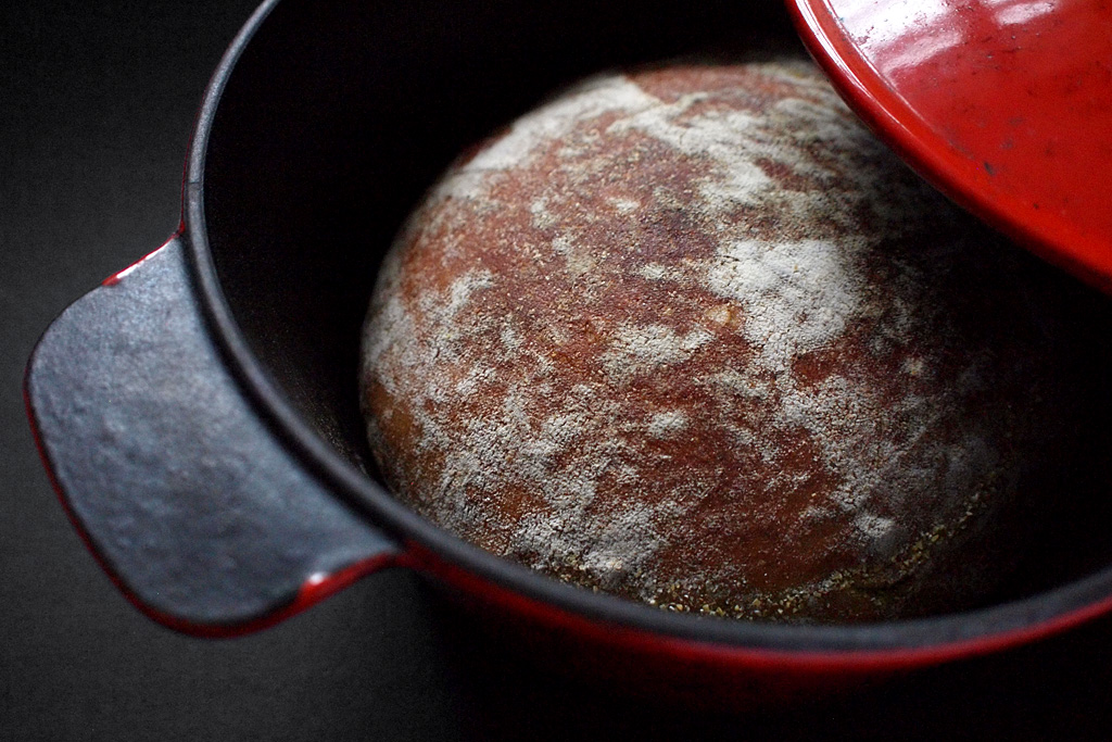 Jediné, co potřebujete, jsou základní suroviny, kvásek a libovolná pečicí nádoba s víkem. Může to být litinový hrnec, skleněný pekáč nebo robustní smaltovaný kastról po babičce. Nádoby jsem vyzkoušel všechny a pokaždé se z nich vykutálely povedené bochníčky.