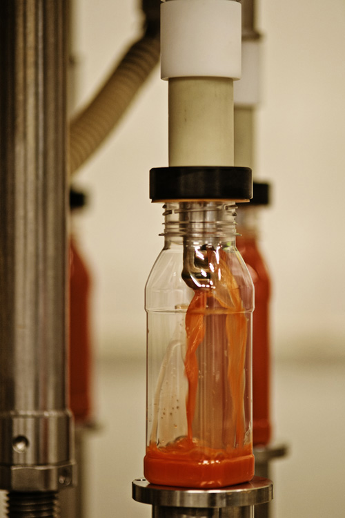 Ošetření vysokým tlakem probíhá přímo v lahvičkách, které se plní do košů. Ty se zasunou do válce paskalizátoru, kde se zaplaví vodou a s pomocí intenzifikátoru natlakují na 600 MPa. Plast (nebo jiné flexibilní balení, např. fólie) je nutný proto, aby láhev se šťávou pod tlakem nepraskla (balení se jen mírně zdeformuje a pak zase narovná). Vystavení tlaku trvá jen pár minut, poté jdou lahvičky ven, přilepí se jim etikety a můžou jít do světa.