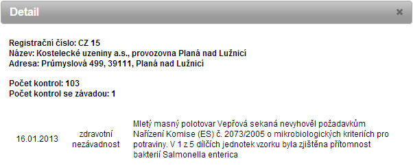 Na mapě SVS si tak můžete zkontrolovat jakékoliv řeznictví nebo jatka (odkud třeba maso kupujete) a dozvíte se o sebemenším zjištěném problému od nepřesného složení na etiketě až k závažnějším průserům s hygienou.