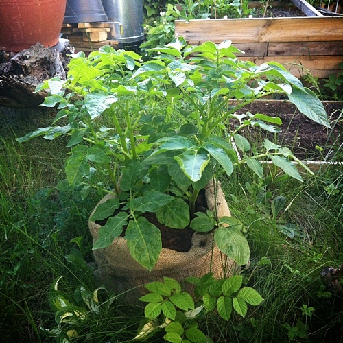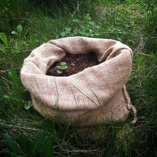 Zkouším letos poprvé, ale už mi to skoro přerůstá přes hlavu! Sežeňte si brambory na sadbu (ideálně nějakou pozdní odrůdu) a jutový pytel nebo velkou nádobu (> 30 cm průměr, > 30 cm hloubka). Funguje to děsně jednoduše — na dno srolovaného pytle vysypete asi 10 cm vysokou vrstvu substrátu, přidáte 3 brambory, lehce zasypete a čekáte. Jakmile brambory vystrčí zelené růžky, tak postupně substrát přisypáváte do výšky co to jen půjde.