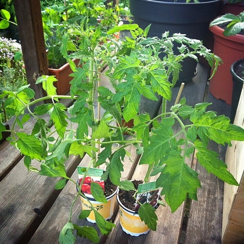 Sám tyhle trpaslíky nemám moc rád, a proto sázím normální rajčata do větších nádob (30 cm průměr, 30 cm hloubka, třeba i děravý kýbl). K těm musíte dát navíc tyčku a ještě v průběhu růstu odlamovat boční výhonky, které se tvoří v úžlabinách listů (když zapomenete, udělá se vám z rajčete obří liána). Práce navíc ale stojí za to, a pokud rajčata i dobře pohnojíte, budou z vás rajčobaroni! Každý rok nakoupím šest nebo osm sazenic, jednu dvě uzdeším, ale zbytek je zdrojem radosti až do září.