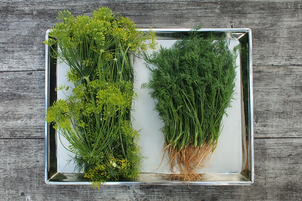 Vlevo kopr odrostlý – do nakládaček, kvašáků etc.
