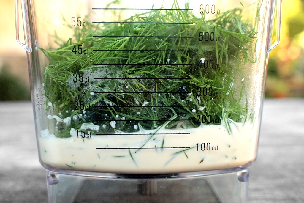 Pokud si to chcete zkusit doma, je potřeba nějaký výkonný mixér. Zkoušel jsem to obyčejným tyčákem i Bamixem, ale dostal jsem jen pěknou světlou koprovku se spoustou jemně nasekaného kopru… :)