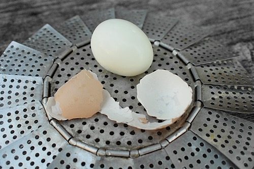 A když už jsme u vajec, před papiňákovou mánií (která mě aktuálně fest drží :), jsem jel vejce jen v pařáčku v hrnci. 10 minut po vložení a zchlazení jsou z toho krásná vejce na tvrdo pro chelbíčky, saláty etc. Funguje obdobně jako ta metoda výše, jen je tam ten pařáček navíc.