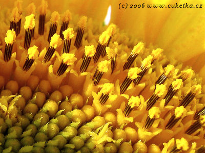 Nádherné počasí přeje mé aktuální favoritce. Ta si dopřává atomový výbuch barev a celá celičká je prostoupena nutkáním porodit stovku semínek. Jsem docela zvědavej co to udělá s těma špičatejma lístečkama uprostřed. Jestli vyletí, nebo ne ;)