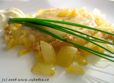 - kolem kotletek nasypte cibulku