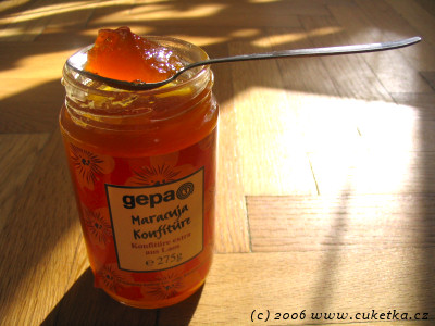 Tato marmeláda pochází od německé fairtradeové firmy Gepa (tj. osvědčeno na němekém trhu = plus body). Povedené balení obsahuje 275g marmelády bez barviv a konzervačních prostředků. Obsah ovoce je 30g/100g. Ihned vám prozradím, že na začátek jsem vybral asi ten nejslabší vzorek, protože marmeláda byla pro mně velkým zklamáním.