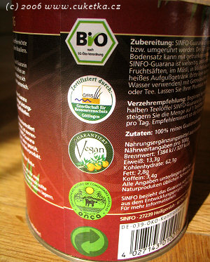 Já doporučuji být s dávkováním guarana opatrný, opravdu je to celkem dost síla a je dobré, když si pomaličku najdete svou optimální dávku. V ůčinku (alespoň na pana Cuketku) bych to přirovnal k rychlosti nástupu kávy, ale s délkou účinku jako u zeleného čaje. Já osobně holduju kofeinu nejlépe v podobě kávy a tak mně guarana nechává docela chladnou.
