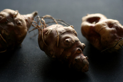 O topinamburech (také známých jako jeruzalémské artyčoky či židovské brambory) toho můžete vygůglit a načíst celé jedno huňaté nekonečno, proto vyberu jen to hlavní. Krom toho, že jsou vizuelně zcela neodolatelně ošklivé, jsou to podzemní hlízy jednoho z druhů slunečnic.
