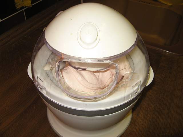 Taky je to i příspěvek do fóra o zmrzlinovači, na jaře se vyrojí akční nabídky, tak abyste si do té doby rozmysleli, jestli ho chcete. Já mám od Tchiba za 899 Kč na 1 litr zmrzliny a úplně mi stačí. Vložka se musí 24 hodin předem dát do mrazáku, tak já ji tam pro jistotu mám pořád, abych v případě náhlé inspirace nemusela čekat. K tomuto receptu je strojek na zmrzlinu zapotřebí, bez něj to není ono.