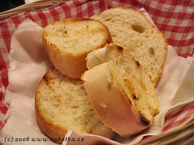 K tomu docela nevydařený vtip á la suchý rohlik – ochucené pečivo grilované na roštu tzv. Psomi scharas za 25,– Kč