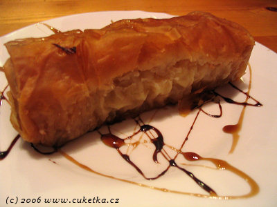 JJ, správně to má být filo těsto, ale neuvádějí to v jídelním lístku, tak bych tomu moc nevěřil. Jinak filo těsto se dá koupit v obchůdku (majitel konkurnenční taverny Olympos) v Radhošťské ulici (na objednávku nebo musíte mít zrovna štěstí).