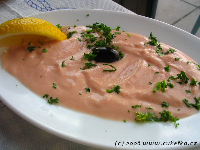 Jako studený předkrm jsem pro porovnání opět vyzkoušel jikrovou pomazánku Taramas za 80,- Kč (porce 270g!!!). V Revoluční tedy byla o dost lepší. Tato varianta mi přišla mírně nakyslá a málo „jikrová“.
