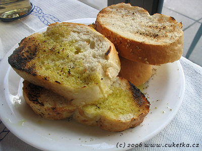 K tomu jsem opět risknul pečený chleba za 20,- Kč. Tady je to ve srovnání s Revoluční zase naopak. Konečně čerstvý opečený chlebík, na kterém se poctivě podepsalo grilování a na kterém se nešetřilo s olivovým olejem. Někdo může brblat nad ohořelými okraji a bude mít pravdu. Mně se to ale shodou okolností takto líbí :) Jo a byl výborný!