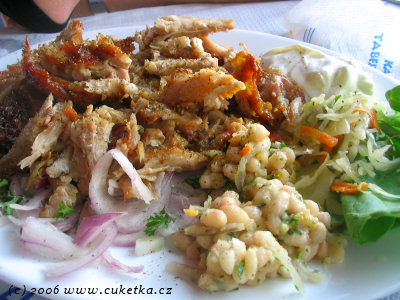 Ženská část cuketkova týmu si nedala vymluvit objednávku obyčejného Gyrosu, ovšem za 140,- kč (270g + obloha). Na fotce i v reálu nevypadal vůbec vábně a úpravou toto jídlo propadá. Toto ošklivé vepřové káčátko se však postaralo o překvapení večera, protože, tak šťavnatý a dokonale propečený a kořeněný gyros jsem snad ještě nejedl. Možná jsem jen chytli ten správný řez, ale stálo to opravdu za to!