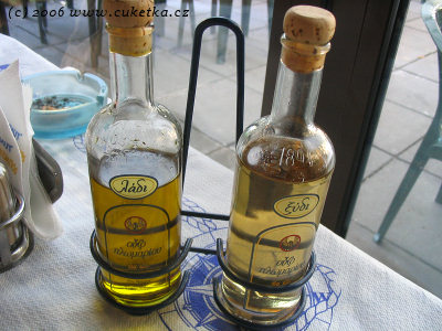 Kávičku a dezert jsme pro tentokráte vynechali a tak na závěr fotka oleje a octa, které jsou na stole k dispozici. Pěkný detail, který potěší.