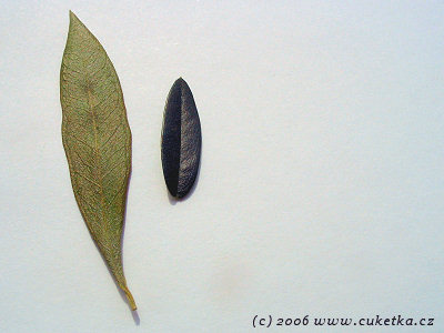 Mrkejte na tyhle dva lístky. Ten větší je ze starého a velkého olivovníku z ostrova Kos. Ten menší bumbrlik je ten můj. Sami vidíte, že má ještě co dělat :)