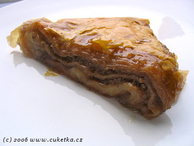 Tento supersladký dezert z listového filo těsta a z vlaškých ořechů prosycený hutným a sladkým sirupem je řecká jednička a najdete jej v nabídce každé opravdové řecké restaurace. Pokud jste Baklavu ještě nikdy neměli, doporučuji. Tenhle „zákuseček“ vám totiž dá docela dobrou představu o výživnosti řecké kuchyně – je tak sladký a tak hutný, že vás doslova knokautuje. Baklavu prodávají přímo z plechu plného sirupu (dovezeno z ňecka). Není vůbec oschlá, naopak – crčí z ní sirup ze všech stran.