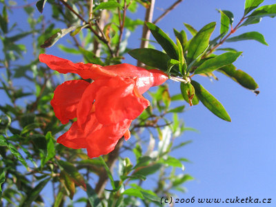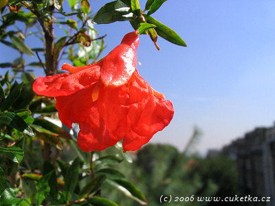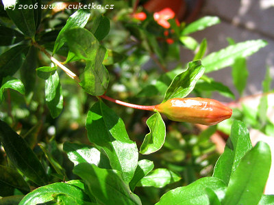 Můj granátovník je šílený nezmar, přežil opakované a letité boje s „takovýma-těma“ bílýma muškama, jen aby se v létě vždy vzchopil a zplodil jeden náherný květ. Letos to dokonce vypadá na kvítky dva!