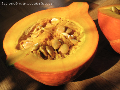 A ja to ochucuji jeste troskou umeocta a na zaver par kapek dynoveho oleje z Rakouska, ale pry ho maji uz i u nas v nekterych prodejnach. Ale dyni Hokkaido jen tak clovek u nas nesezene, no snad jen v bio obchodech. Da se to udelat i z normalni dyne. Shanim marne najeke jine dynove recepty, nemate nekdo zajimavy odkaz ?