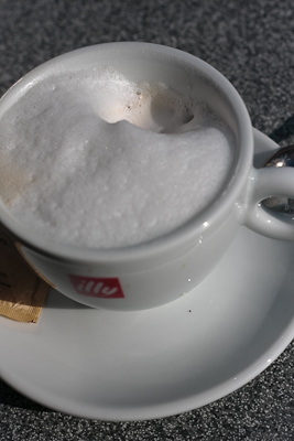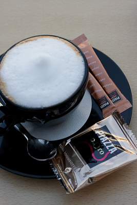 (-) chuť přijatelná, ale samotnou kávu nešlo ohodnotit, v podstatě se jednalo o menší strojové cappuccino
