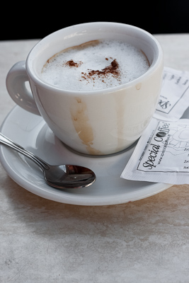 Cappuccino má také svá pravidla, i když trochu volnější – jedno výše uvedené standardní espresso dolité na 150 ml našlehaným mlékem s mikropěnou, pomocí které se dá kreslit latte-art. Tečka. Sirupy, zdobení a sypání mohou být přidány až na výslovné přání zákazníka.Café BarBar