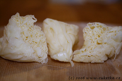 Tady na fotce vidíte už hotové rozetky, které jak vidíte sami se s těmi čerstvými nedají srovnat. Jsou takové hodně pomačkané a otlučené, ale i tak je to pořád „pecka“. Sýr je velice pikantní a na patře doslova ožívá! Kdybych ho měl umísti někde do známého spektra, tak asi někde na půlcesty mezi ementálem a parmezánem.